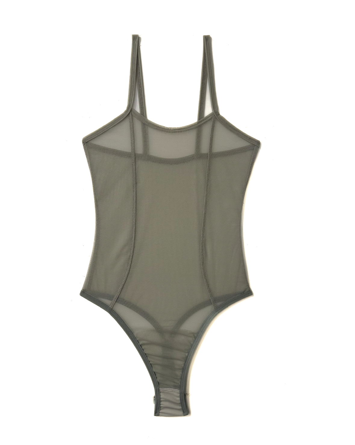 The Kitty bodysuit is made in 4 way stretch mesh. It is fully sheer with two style lines. Available in multiple colours and your choice of a thong or full back.